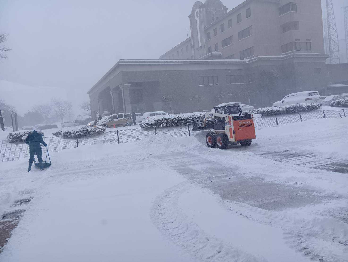 その為駐車場や入口付近の除雪を行いました。