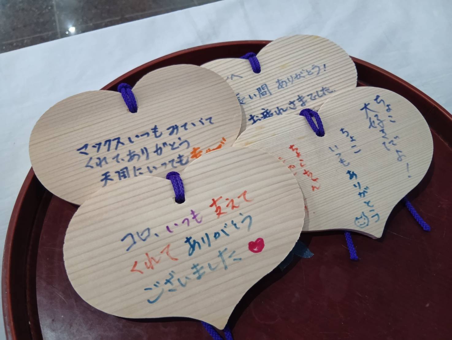ハート型の木札の裏面に、