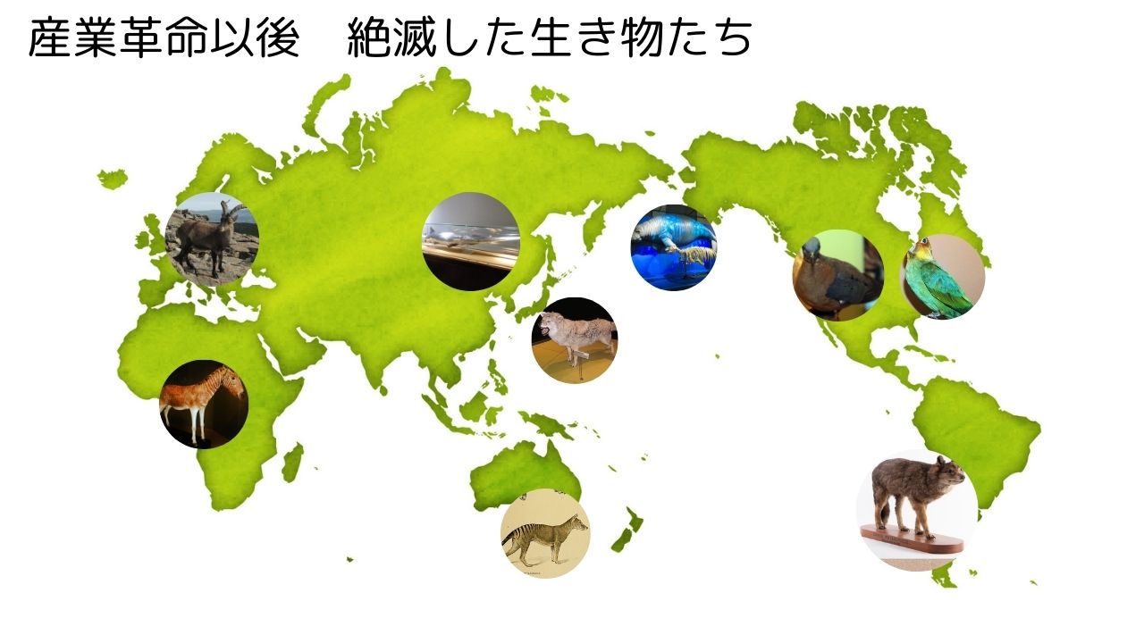 ここでは産業革命以後絶滅した動物の一例を、具体的に見ていきましょう。